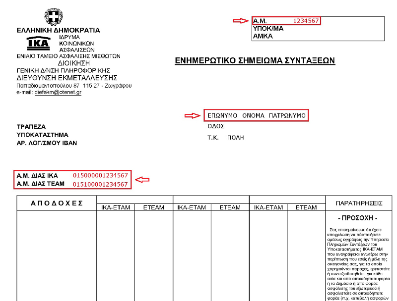 Σε περίπτωση που διαπιστωθεί οποιαδήποτε διαφοροποίηση στα προσυμπληρωμένα ποσά της Δήλωσης Φόρου Εισοδήματος με αυτά της Βεβαίωσης Συντάξεων, παρακαλούνται οι συνταξιούχοι να απευθύνονται στο αρμόδιο τμήμα Πληρωμών Συντάξεων του Υποκ/τος ΙΚΑ-EΤΑΜ του τόπου κατοικίας τους, για να γίνουν οι απαραίτητες ενέργειες για τη διόρθωση και εμφάνιση του ορθού ποσού στη Δήλωση Φόρου Εισοδήματος.